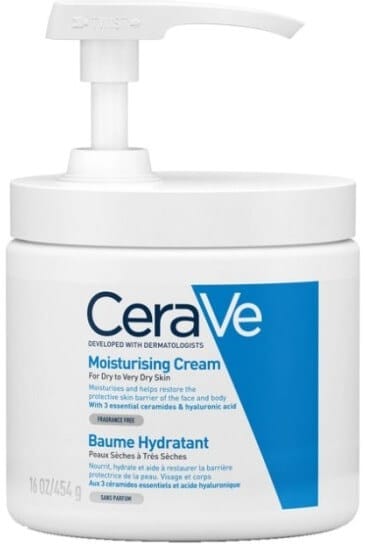 Η CeraVe Moisturising Cream, που έχει δημιουργηθεί μαζί με δερματολόγους, ενυδατώνει αποτελεσματικά, ενώ παράλληλα συμβάλλει στην αποκατάσταση του επιδερμιδικού φραγμού.
