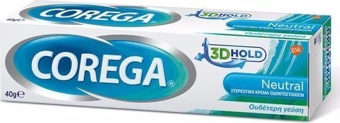 Η στερεωτική κρέμα οδοντοστοιχιών Corega 3D Hold Neutral δεν περιέχει άρωμα, χρωστικές & είναι σχεδιασμένη για να παρέχει συγκράτηση όλη την ημέρα.