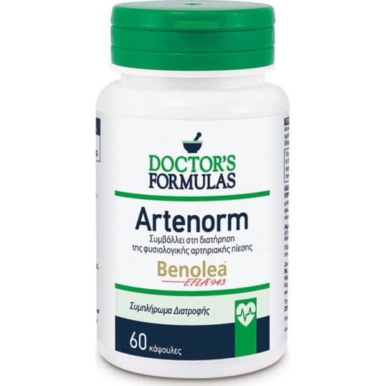 Το συμπλήρωμα διατροφής Doctor’s Formulas Artenorm περιέχει το τιτλοδοτημένο ξηρό εκχύλισμα από φύλλα ελιάς Benolea, το οποίο συμβάλλει στην διατήρηση της φυσιολογικής αρτηριακής πίεσης και στην υποστήριξη των λειτουργιών του καρδιαγγειακού συστήματος.