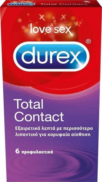 Εξαιρετικά λεπτά προφυλακτικά Durex Total Contact ( 6 τεμ ) με περισσότερο λιπαντικό για κορυφαία αίσθηση και απόλυτη προφύλαξη.