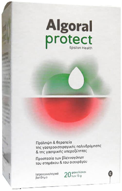 Το συμπλήρωμα διατροφής Epsilon Health Algoral Protect με αλγινικό νάτριο, ανθρακικό ασβέστιο και διττανθρακικό κάλιο, προσφέρει ανακούφιση και προστασία από τις καούρες, τη γαστρική υπεροξύτητα και τη γαστροοισοφαγική παλινδρόμηση.