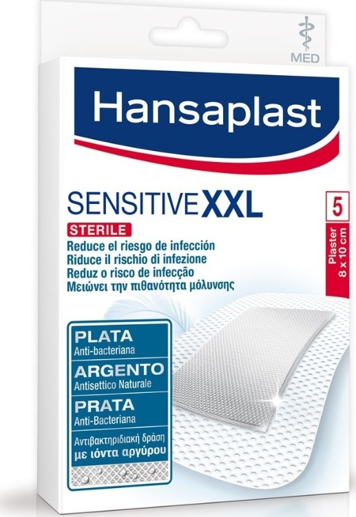 Τα επιθέματα Hansaplast Sensitive MED XXL είναι αποστειρωμένα επιθέματα πληγών για την προστασία μεγαλύτερων πληγών ή μετεγχειρητικών τραυμάτων.
