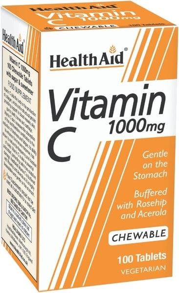 Health Aid Vitamin C 1000mg, Βιταμίνη C Μασώμενη 1000mg με Γεύση Πορτοκάλι.