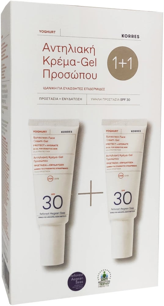 Korres Yoghurt Sunscreen Face Cream SPF30 2 x 40ml Αντηλιακή κρέμα-gel προσώπου SPF30 που προσφέρει ενεργή ενυδάτωση και αίσθηση άνεσης. Οι χρήστες που το έχουν αγοράσει το ξεχωρίζουν κυρίως γιατί προστατεύει ικανοποιητικά από τον ήλιο.