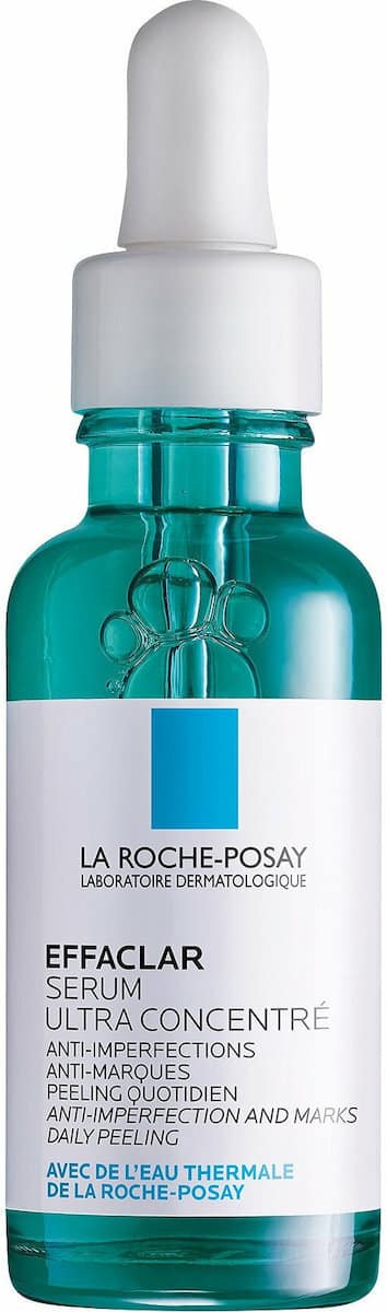 Ορός υψηλής συγκέντρωσης La Roche Posay Effaclar Ultra Concentrated Serum, σχεδιασμένος με ένα σύμπλοκο απολεπιστικών οξέων συνδυασμένο με καταπραϋντική Νιασιναμίδη, που στοχεύει τα μαύρα στίγματα, τις ατέλειες, τα σημάδια και τους ορατούς πόρους της επιδερμίδας με τάση ακμής.