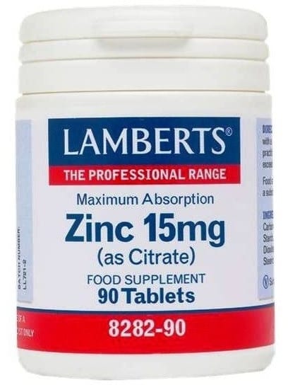 Συμπλήρωμα διατροφής Lamberts Zinc 15mg (Citrate) 90 ταμπλέτες που παρέχει εγγυημένα 15mg στοιχειακού ψευδαργύρου.