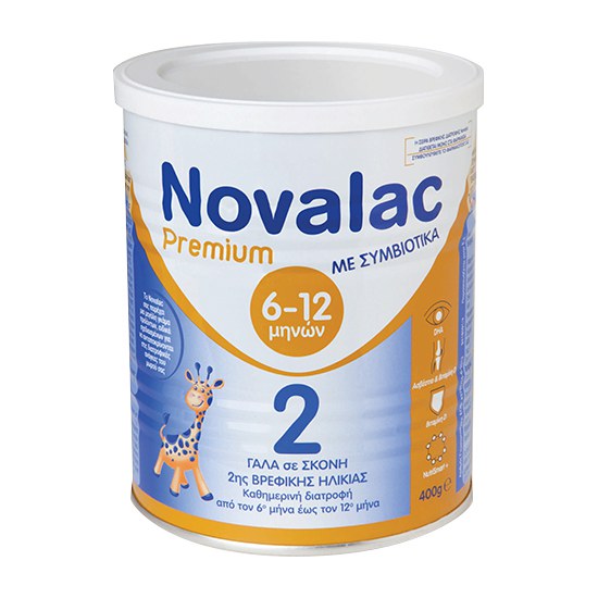 Βρεφικό Γάλα Novalac Premium 2 για παιδιά άνω των 12 μηνών κατάλληλο για τη διατροφή των τελειόμηνων βρεφών από τον έκτο μήνα και μετά. Είναι εμπλουτισμένο με: ΠΡΕΒΙΟΤΙΚΑ GOS, τα οποία βρίσκονται όπως στο μητρικό γάλα. DHA και ARA. ΝΟΥΚΛΕΟΤΙΔΙΑ