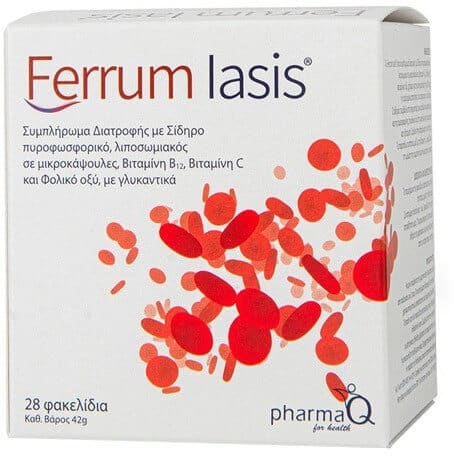 Το συμπλήρωμα διατροφής PharmaQ Ferrum Iasis συμβάλλει στο φυσιολογικό σχηματισμό της αιμοσφαιρίνης και της φεριτίνης και αναπληρώνει την έλλειψη ή τις αυξημένες απαιτήσεις του οργανισμού σε σίδηρο, χωρίς τις συνηθισμένες παρενέργειες (καούρα,δυσκοιλιότητα & ναυτία).