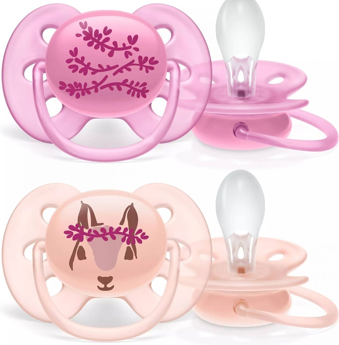 Πιπίλες σιλικόνης με μαλακό, εύκαμπτο προστατευτικό που ακολουθεί το σχήμα του προσώπου του μωρού σας μειώνοντας τα σημάδια και τους ερεθισμούς στο δέρμα, για περισσότερη ανακούφιση και άνεση.