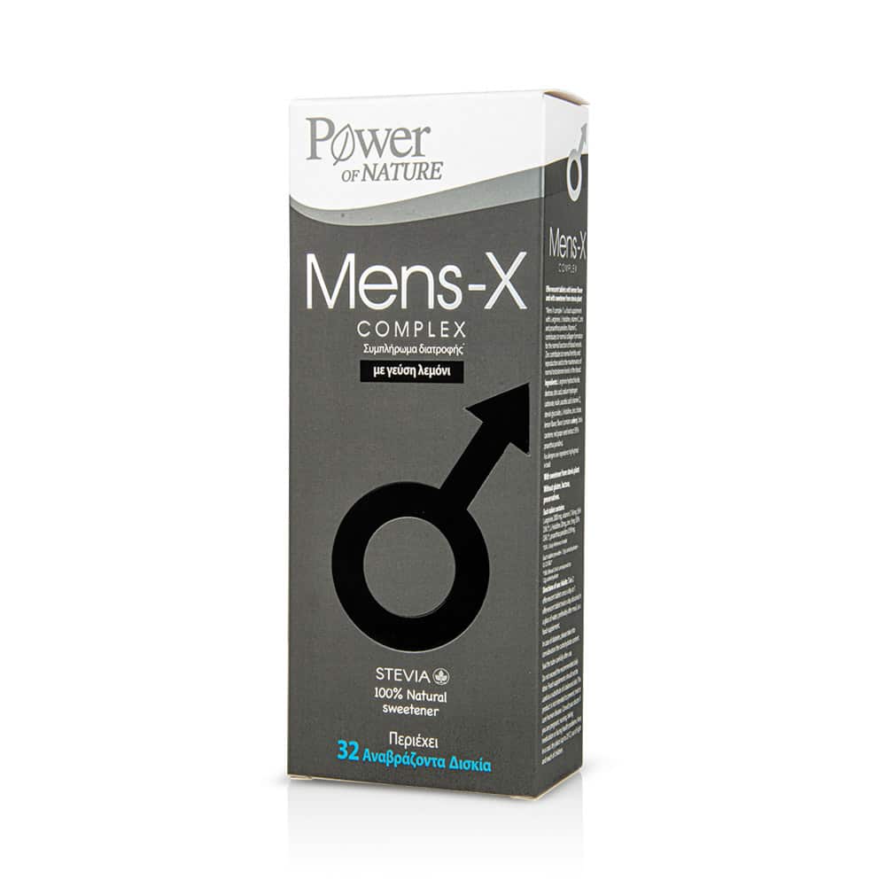 Power Health Mens-X Complex, συσικό συμπλήρωμα διατροφής ειδικά σχεδιασμένο για άνδρες που θέλουν να βελτιώσουν τη στυτική τους λειτουργία με φυσικό τρόπο. Περιέχει L-αργινίνη, L-ιστιδίνη, ψευδάργυρο, προανθοκυανιδίνες από κόκκινο σταφύλι. Σε αναβράζουσα μορφή. Σε 2 tubes των 16 δισκίων.