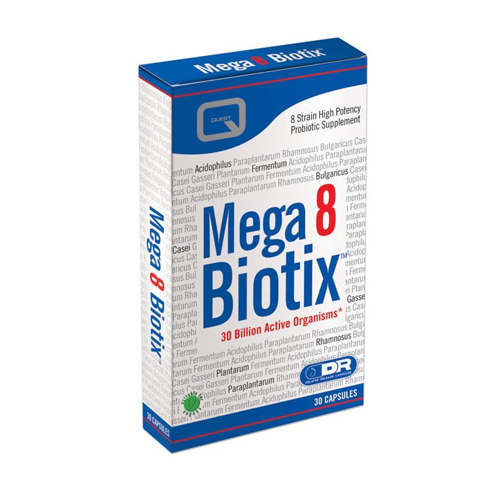 Το συμπλήρωμα διατροφής Quest Nutra Pharma Mega 8 Biotix είναι ένας μοναδικός συνδυασμός 8 διαφορετικών προβιοτικών που αποδίδει μεγάλη ποσότητα – 30 δισεκατομμύρια – προβιοτικών ανά κάψουλα.