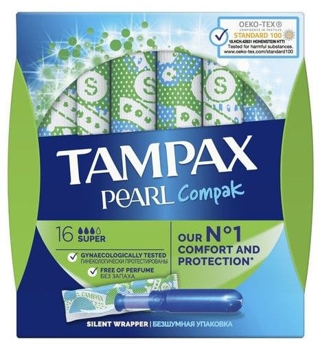 Tampax Pearl Compak Silent Wrapper για Αυξημένη Ροή 16τμχ
