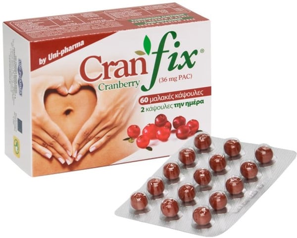 Το συμπλήρωμα διατροφής Uni-Pharma Cranfix Cranberry συνδυάζει εκχύλισμα cranberry με βιταμίνη C, σελήνιο και ψευδάργυρο και συνεισφέρει στη φυσιολογική λειτουργία του ανοσοποιητικού συστήματος ατόμων που υποφέρουν από υποτροπιάζουσες ουρολοιμώξεις.