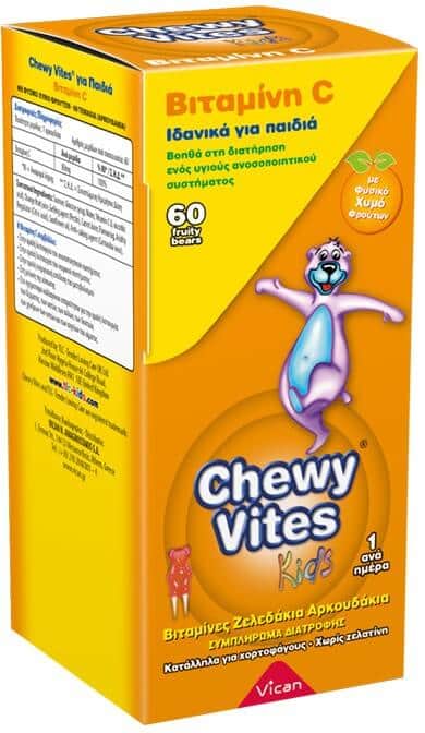 Μασώμενες βιταμίνες Chewy Vites με Βιταμίνη C σε μορφή ζελεδάκια- αρκουδάκια, φτιαγμένα ειδικά για τα παιδιά. Κατάλληλες για παιδιά από ενός έτους και άνω.